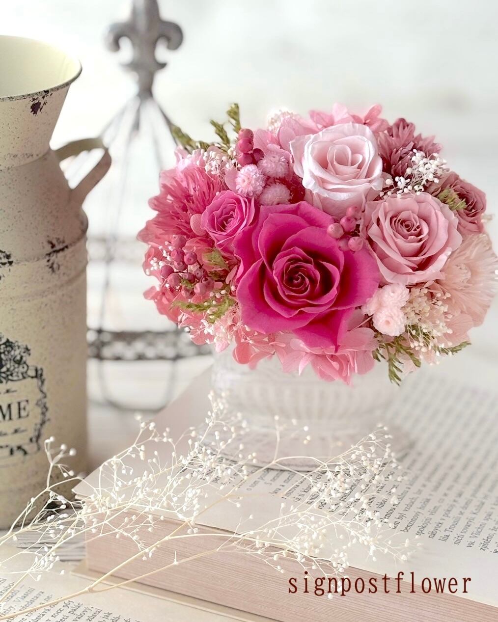 happyピンクのフラワーギフト プリザーブドフラワー/母の日/ギフト/贈り物/プレゼント/誕生日/出産お祝い/新築お祝い/開店お祝い/花/バラ/ピンク可愛い/女性