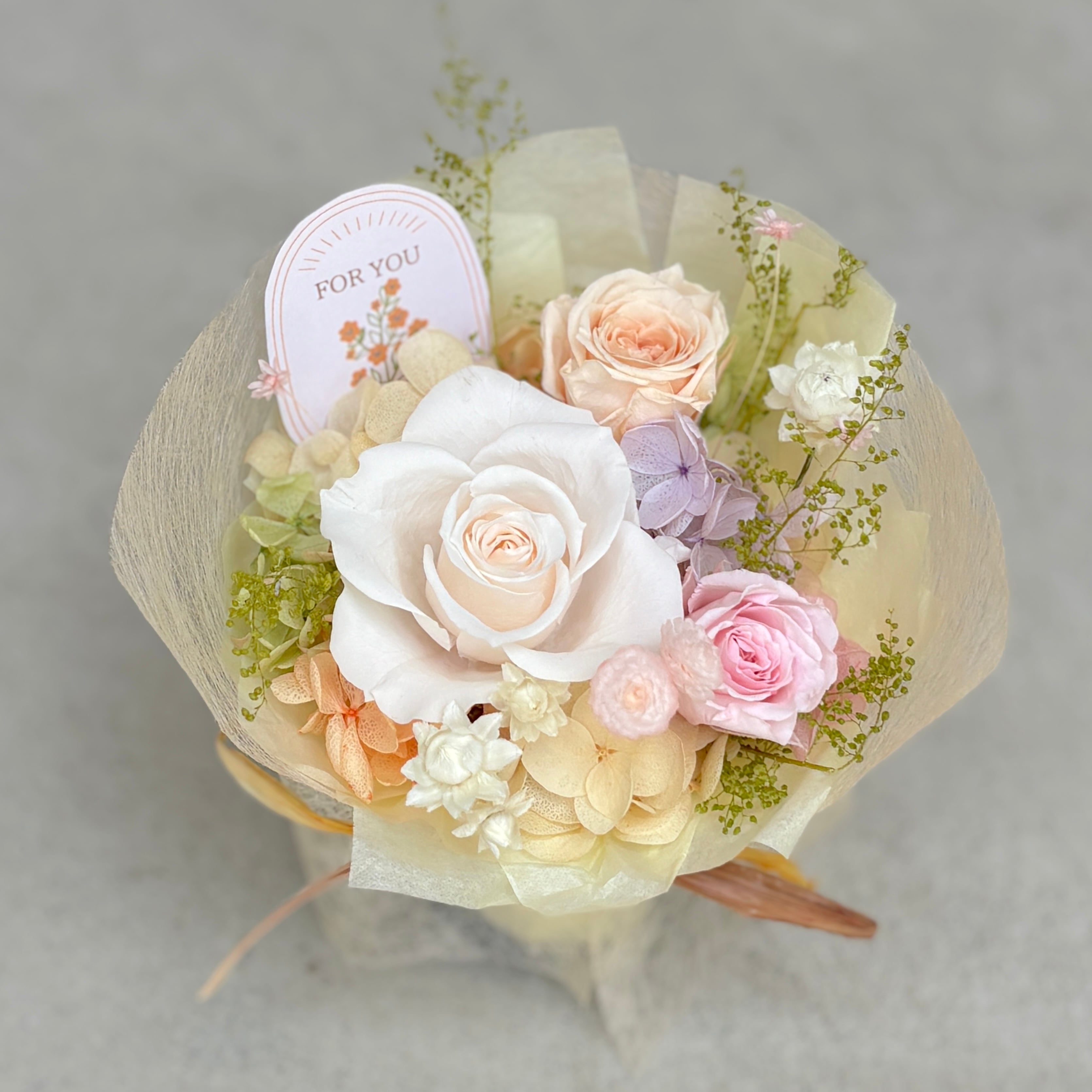 置くだけブーケ風アレンジメント(ナチュラル) プリザーブドフラワー/韓国フラワー/韓式ラッピング/自然/癒し/プチギフト/ロゴカード/インテリア/誕生日プレゼント/ギフト/友人