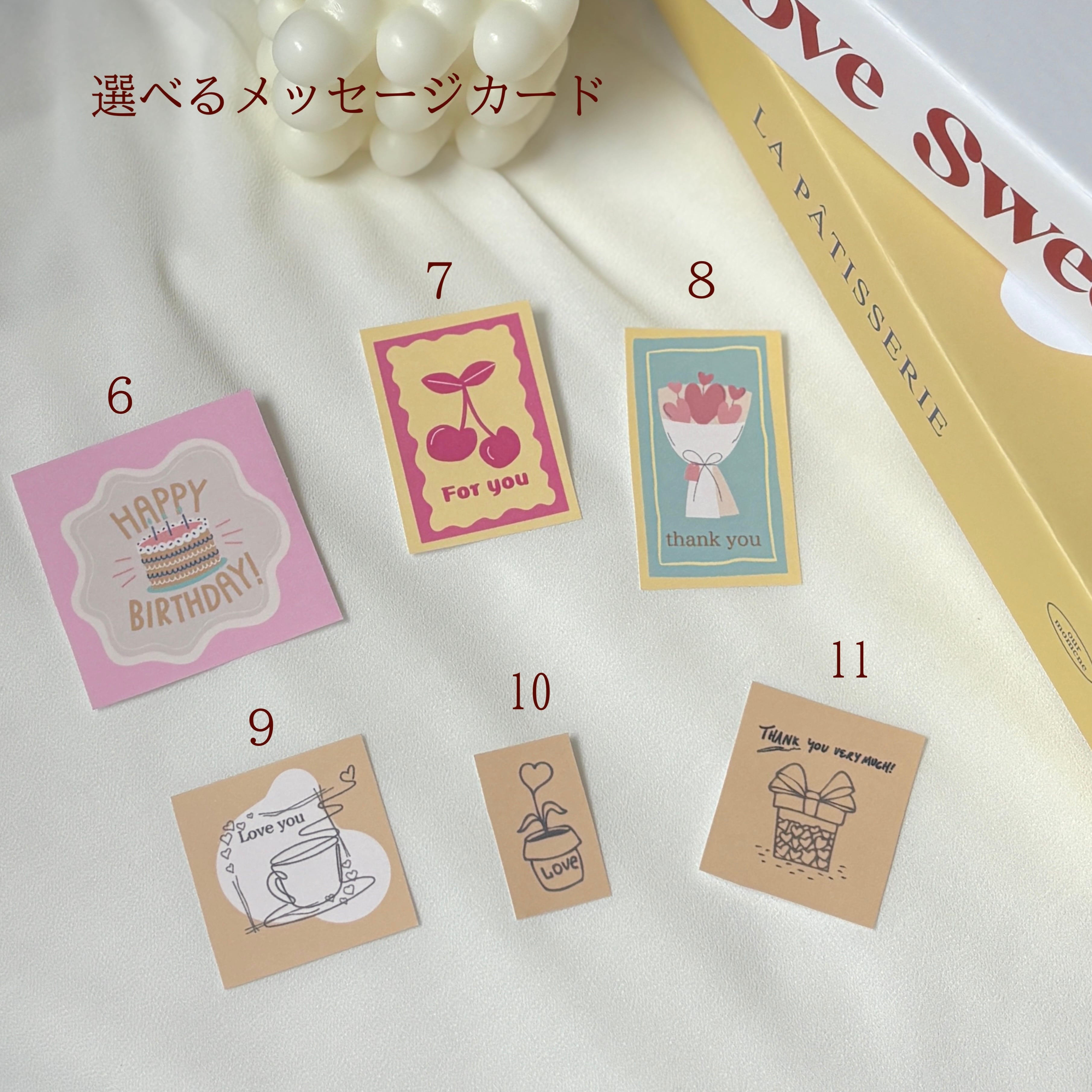 選べるメッセージカードカードは11種類。無料でお付けいたします。