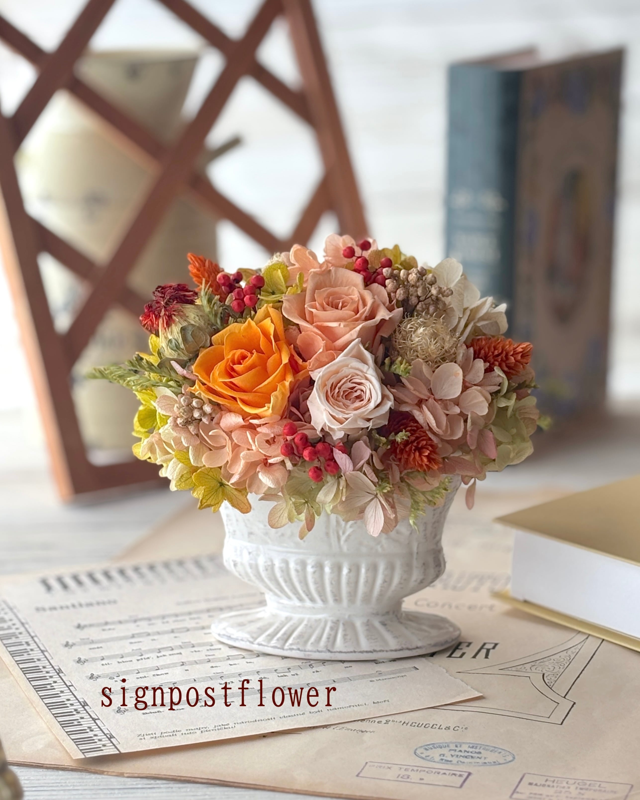 実りの旅でひと休み プリザーブドフラワー/プレゼント/お花/アレンジメント/誕生日/お祝い/母の日/秋/木の実/オレンジ色/ありがとう