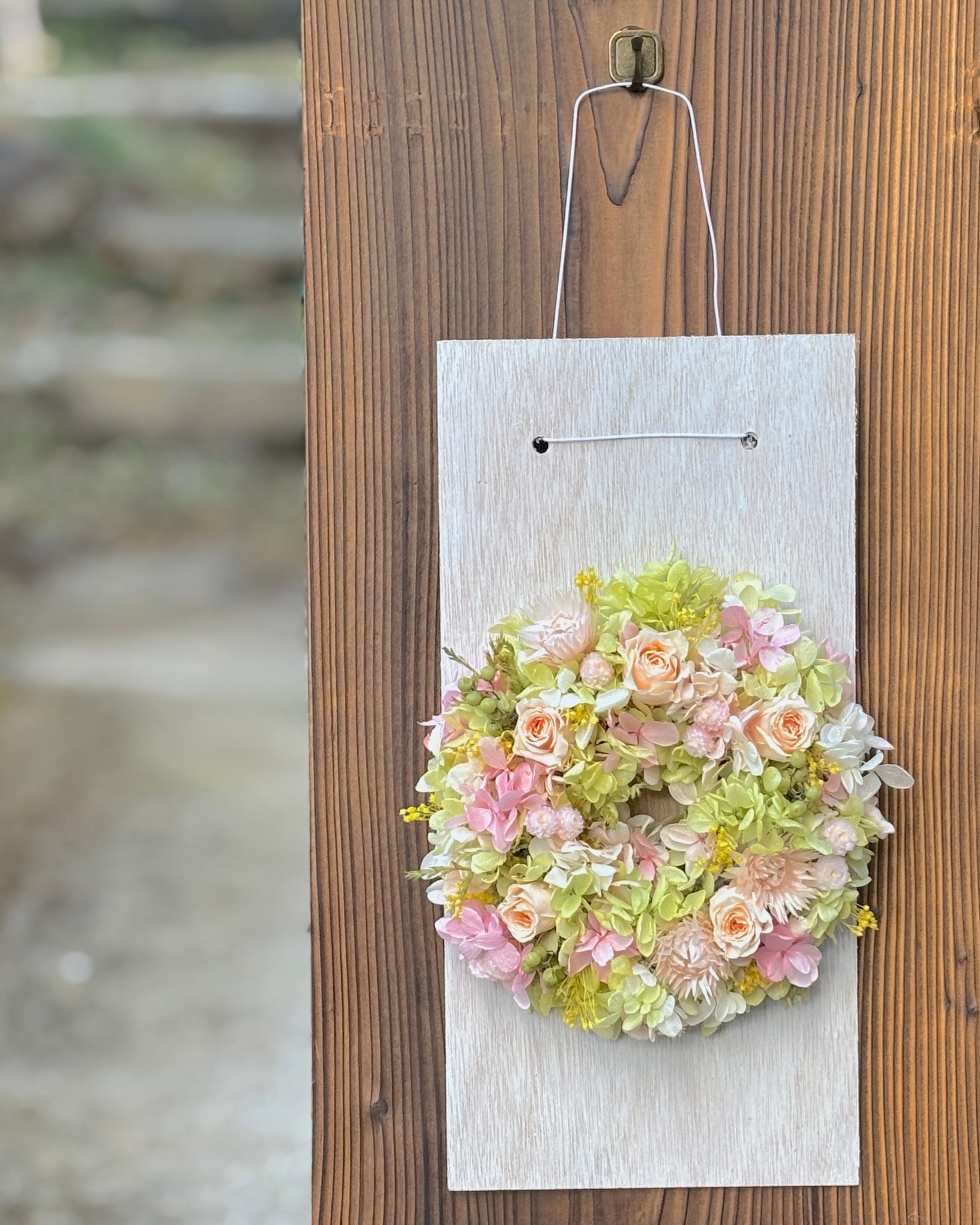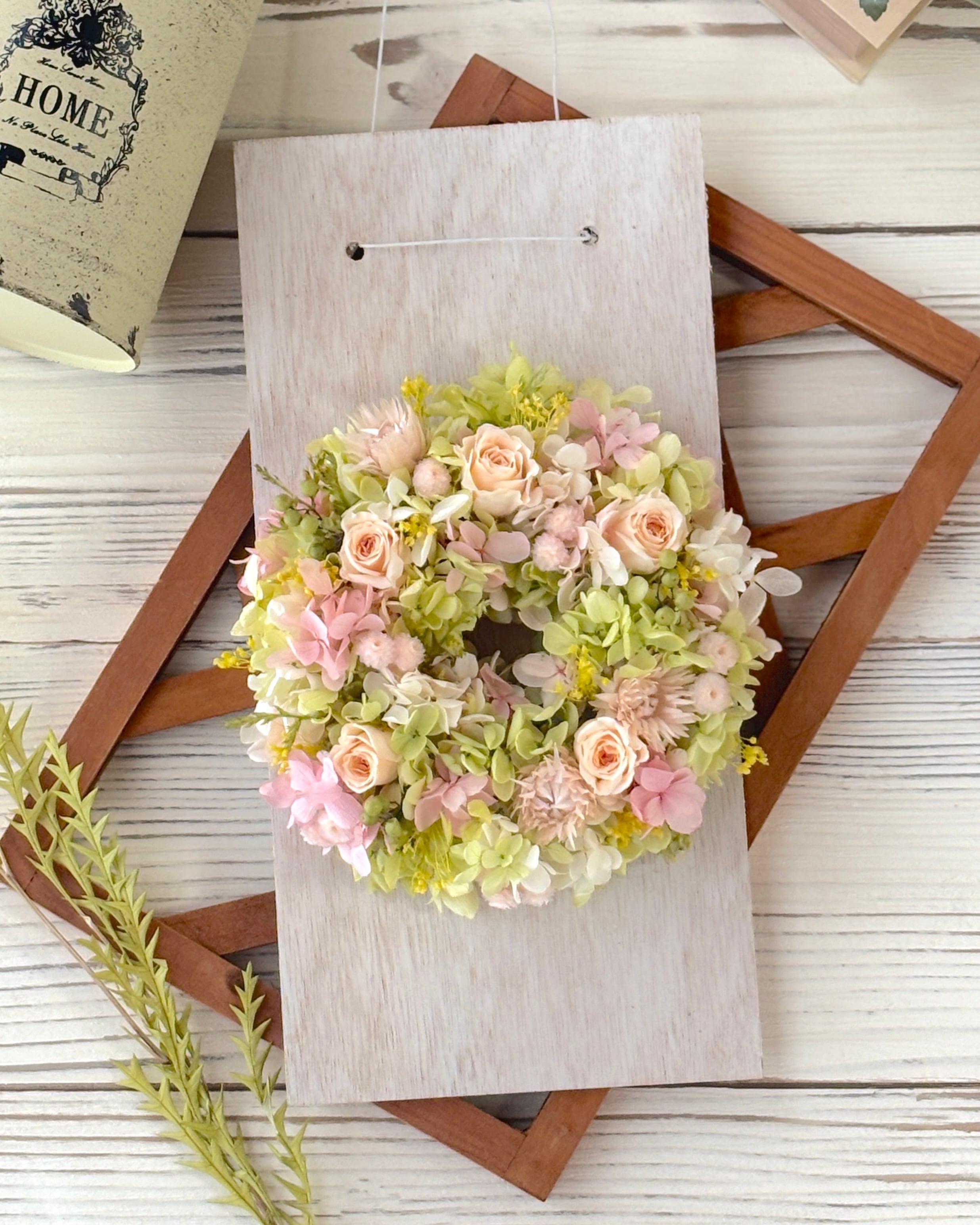 しあわせはじまりリース フラワーリース/ギフト/ナチュラル/グリーン/可愛い/スワッグ/誕生日/出産/入園/入学/新生活/新築/サロン/オープン/グリーン/ピンク
