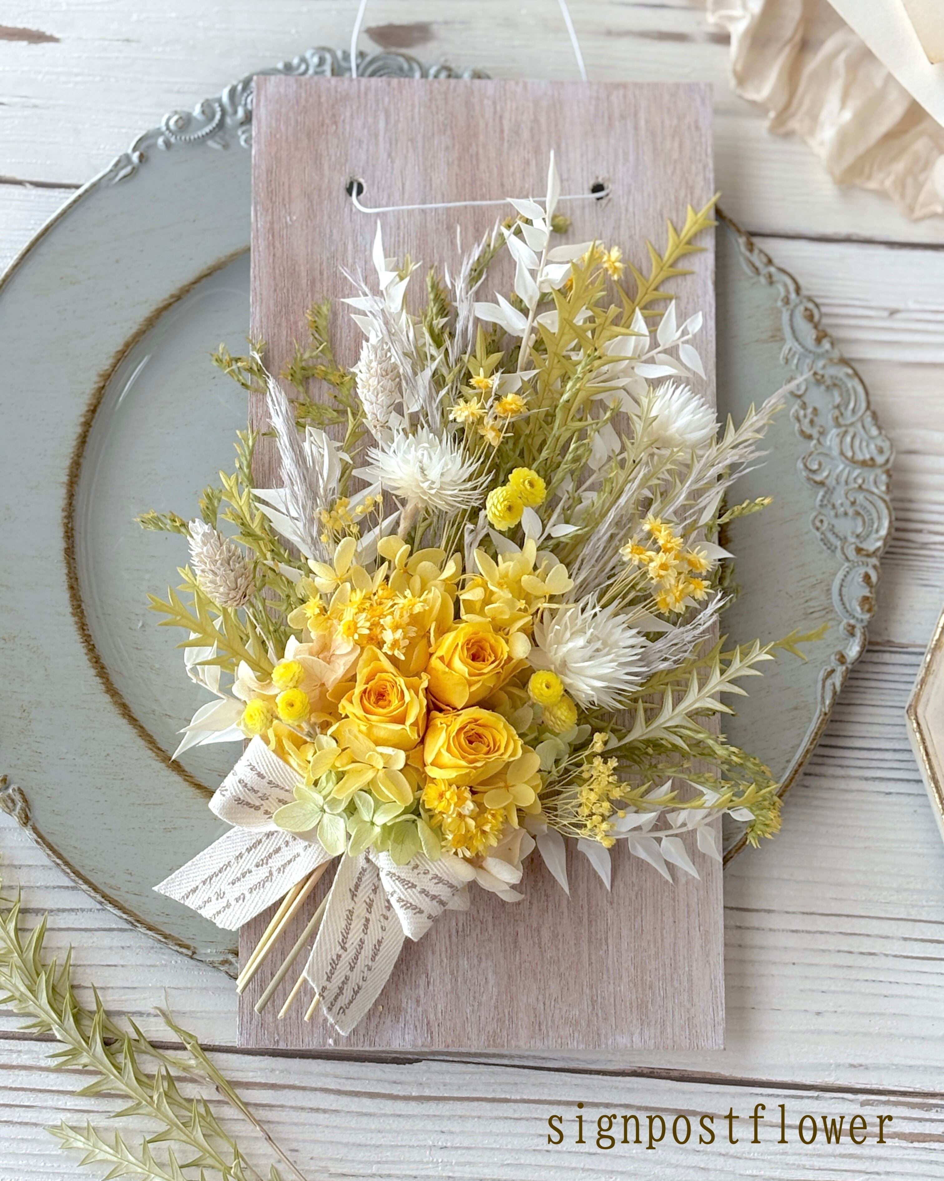 優しいホワイトの木製プレートがお花とお部屋に溶け込み