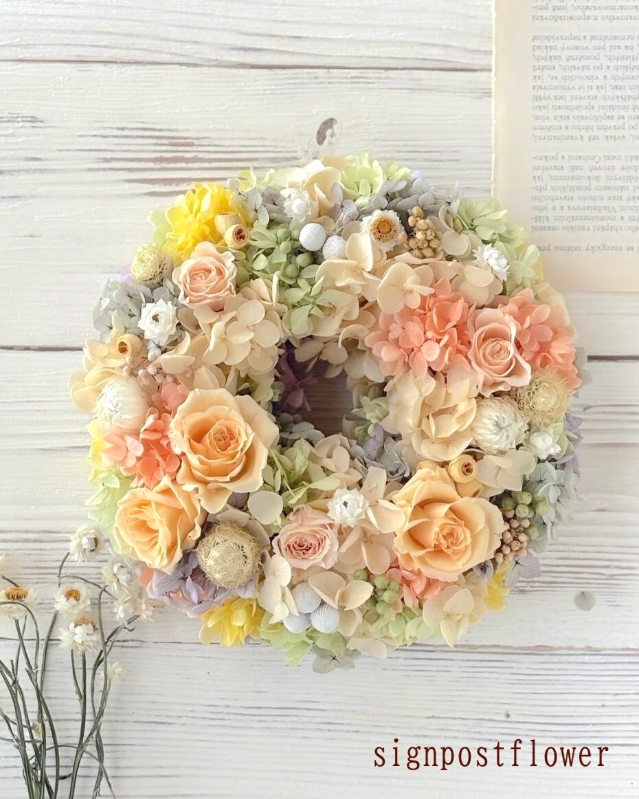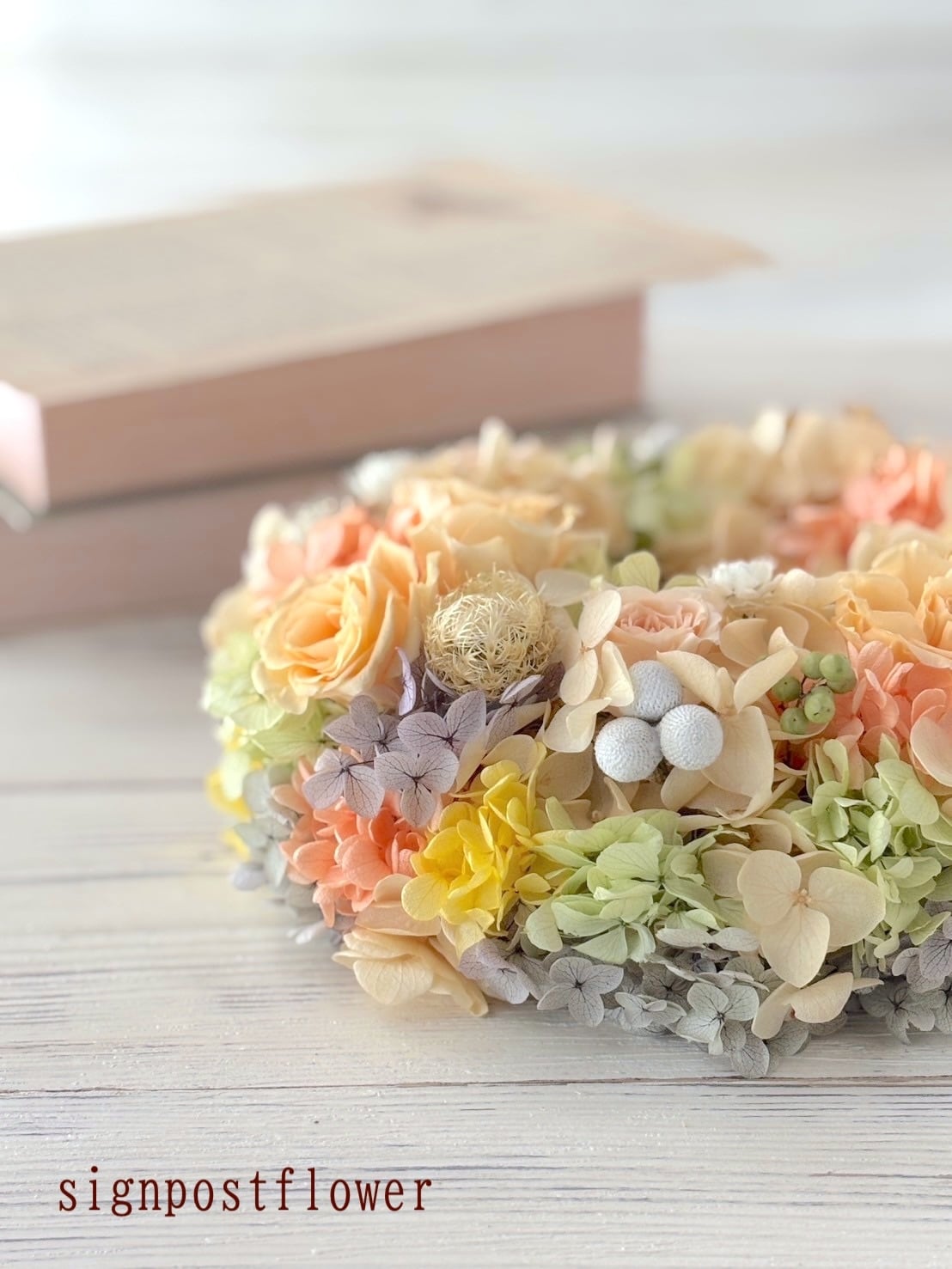 ココロほぐれるカラフルリース 誕生日プレゼント/結婚お祝い/新築/開店/母の日/ナチュラル/可愛い/癒し/ボタニカル/プリザーブドフラワー/ブリザーブドフラワー/
