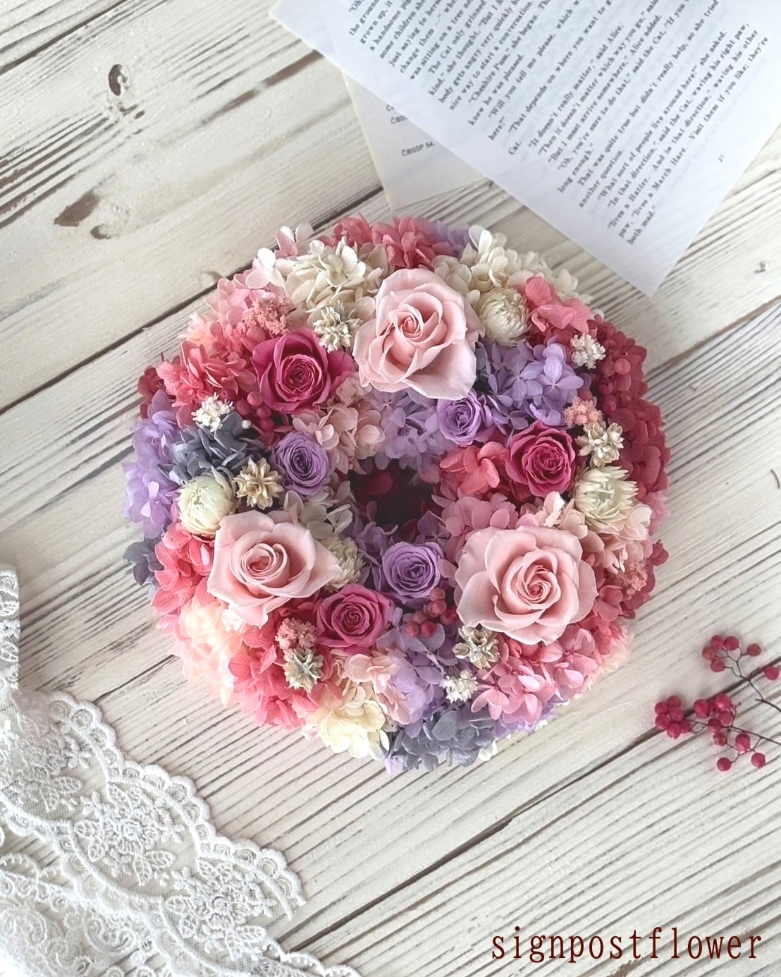 ポップカラーリース 誕生日プレゼント/結婚祝い/新築祝い/開店祝い/プリザーブドフラワー/ピンク/パープル/母の日